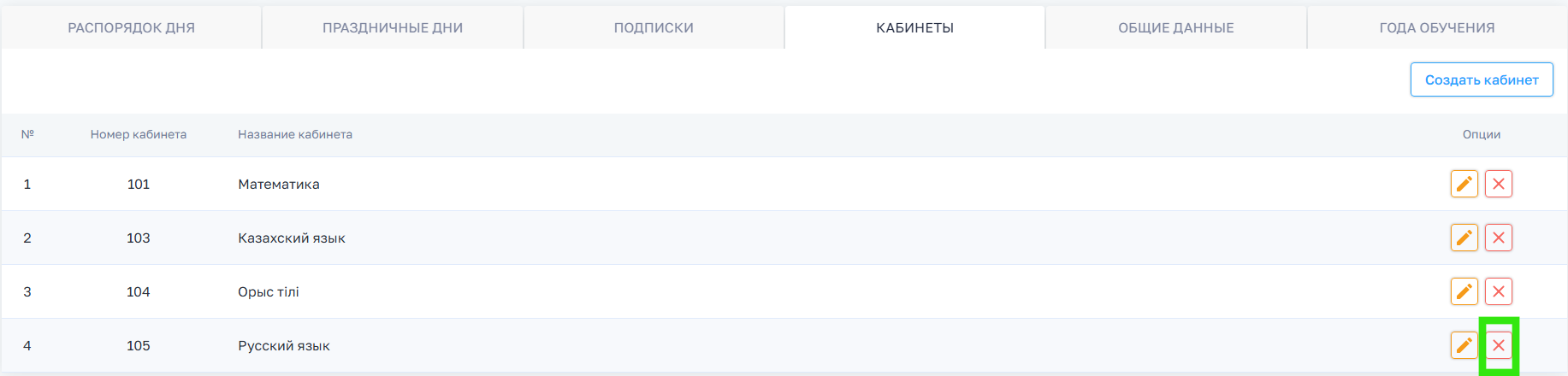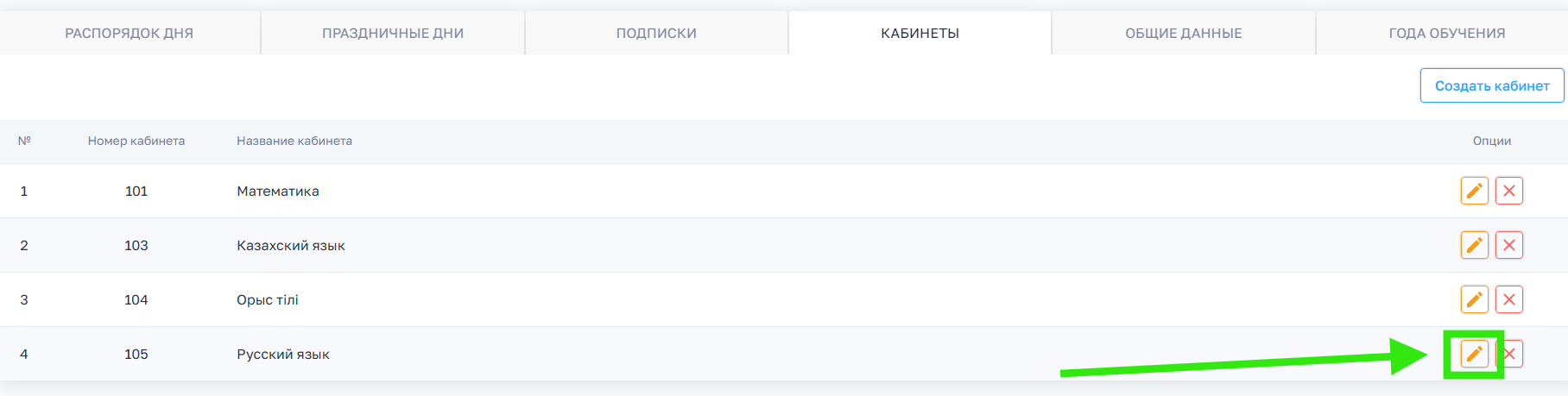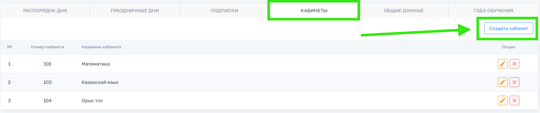 1. В разделе Кабинеты, у вас откроется страница с кабинетами школы.