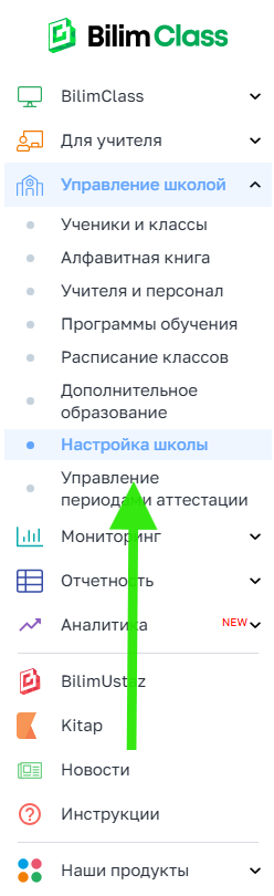 Левое меню → Управление школой → Настройка школы → Кабинеты
