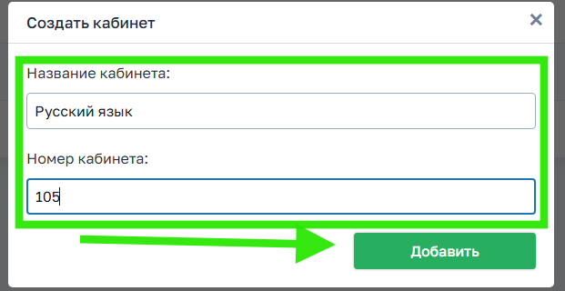 2. Заполняем номер и название кабинета → Добавить