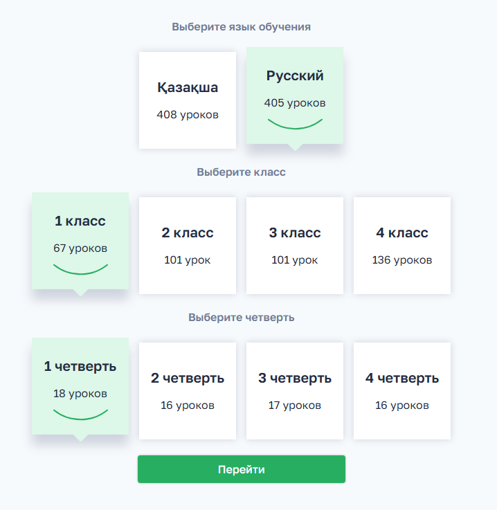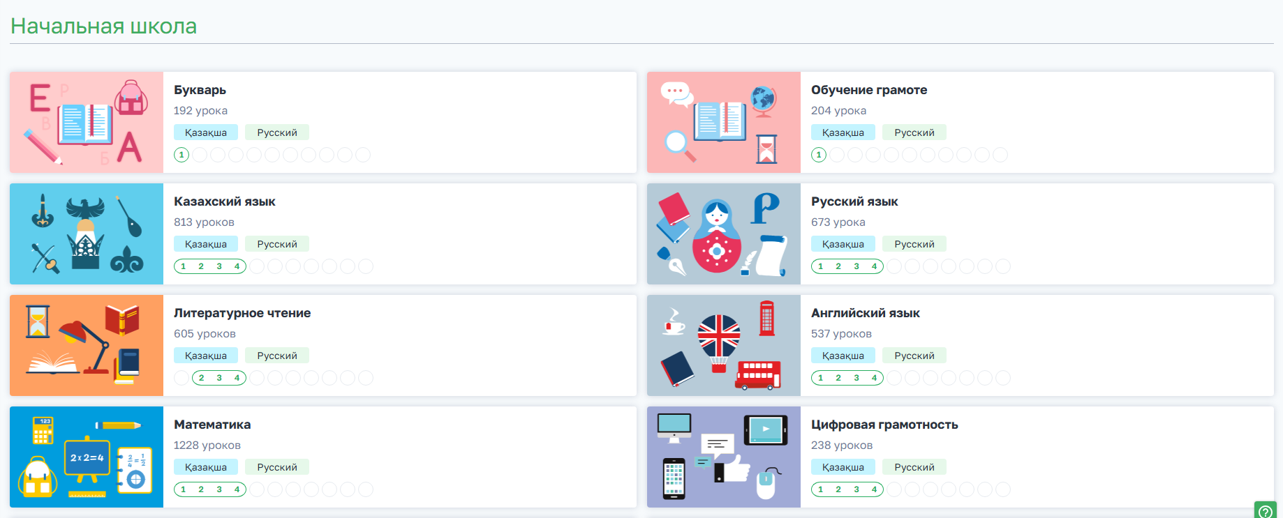 Классы, для которых есть уроки - 1,2,3,4